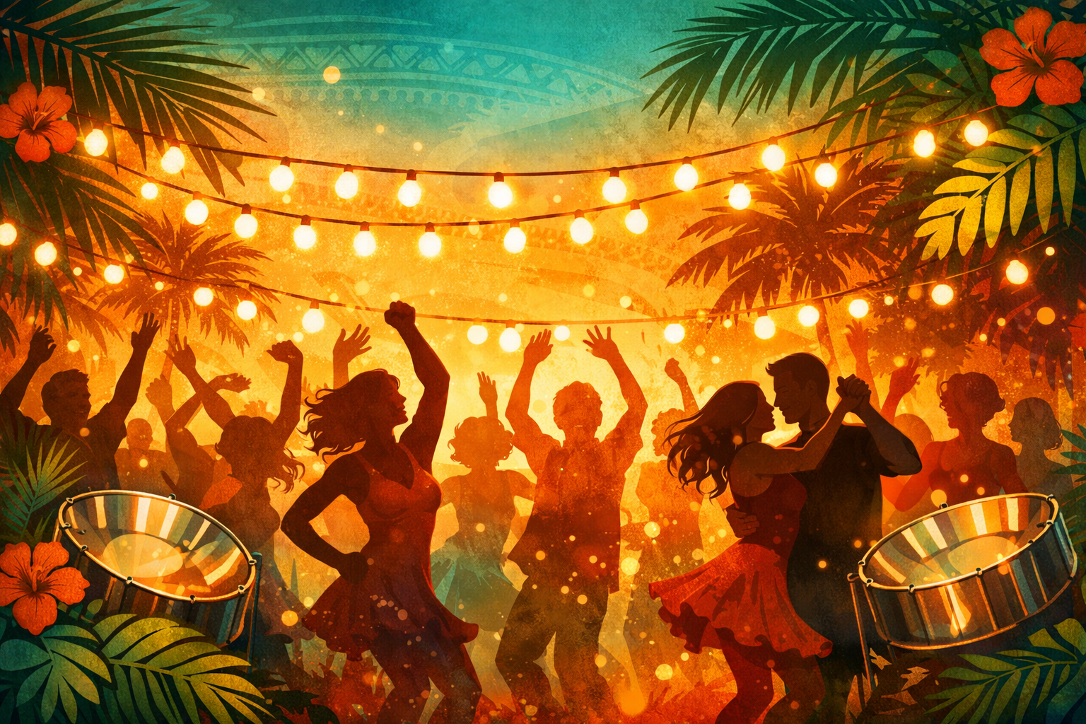 Think bright colors, tropical prints, flowy skirts, linen shirts, and comfortable shoes you can actually dance in. Come as vibrant as the music.