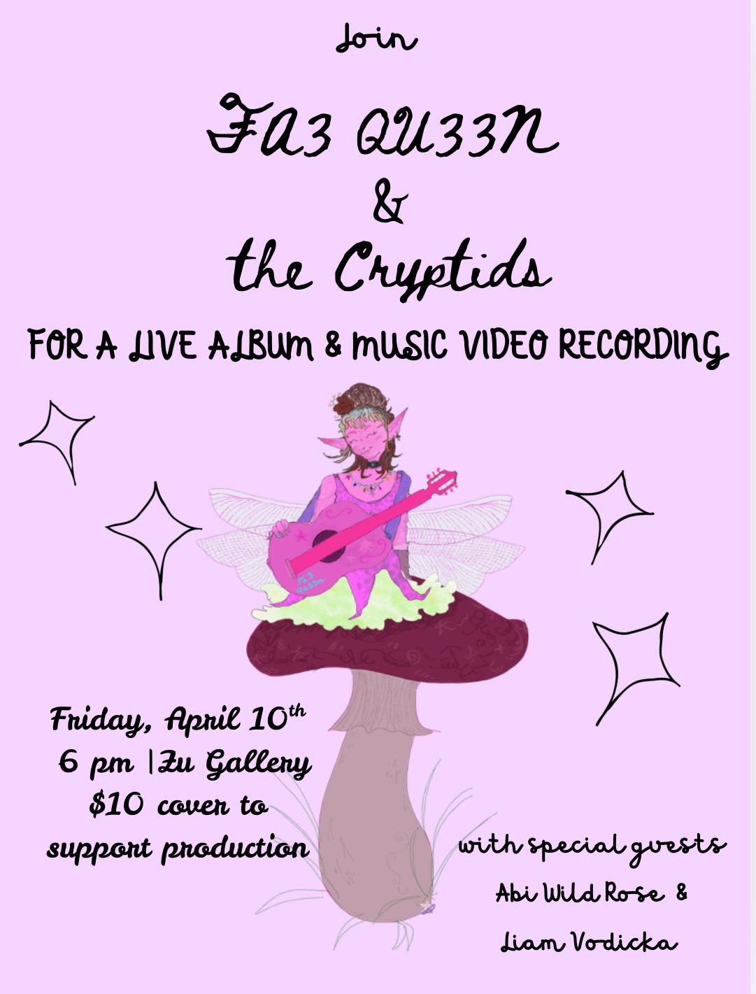 Fa3 Qu33n & the Cryptids are recording their live album & music video at ZU Gallery and you’re invited.